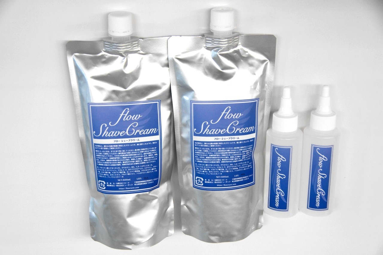 ![]() | フローシェーブクリーム (flow shave cream) 4,620円(税込) 容量:500㎖ (2個) 毛の軟化と剃られる肌の保護に特化したシェービングクリームです。 |